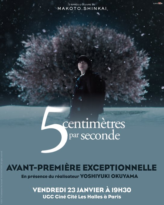 Rendez-vous le 23 janvier à 19h30 pour une avant-première exceptionnelle. Eurozoom organise avec UGC Ciné cité du Forum des Halles une projection exclusive du film 5 centimètres par seconde.