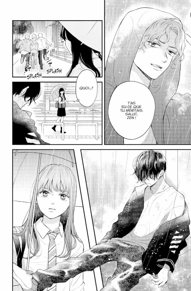 Pourtant, tout bascule le jour où elle tombe sur Zen Ôhira, un lycéen blessé, laissé pour mort après une bagarre. Alors que tout le monde détourne le regard, elle s’arrête, l’aide, et lui sauve probablement la vie. Ce geste complètement désintéressé marque profondément Zen, qui décide de lui “rendre l’appareil”… à sa manière.