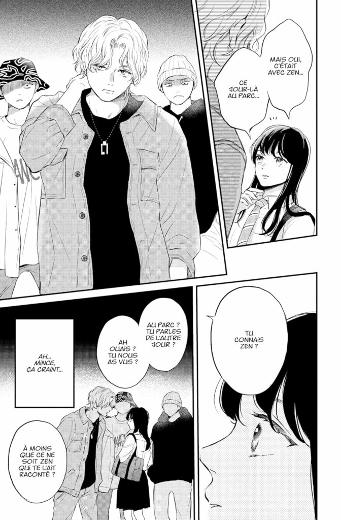 Ce premier tome s’attarde aussi sur la solitude de Risa. On comprend vite que son indépendance extrême n’est qu’une façade ; elle s’est imposé un mode de vie impossible pour ne dépendre de personne. Zen, en la bousculant gentiment, devient le premier à percer cette carapace. Et même s’il l’embarque dans un univers de loubards et de bagarres qui ne lui ressemble pas du tout, il le fait toujours avec respect et bienveillance. Sa bande de potes, un peu fofolle mais jamais méchante, apporte d’ailleurs une fraîcheur inattendue.