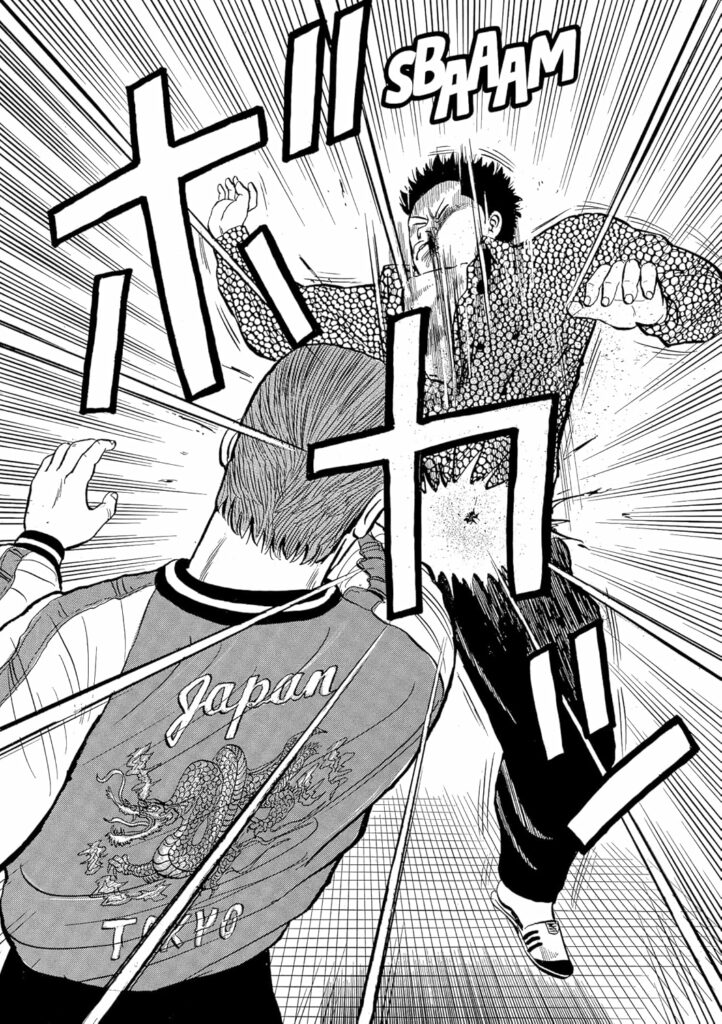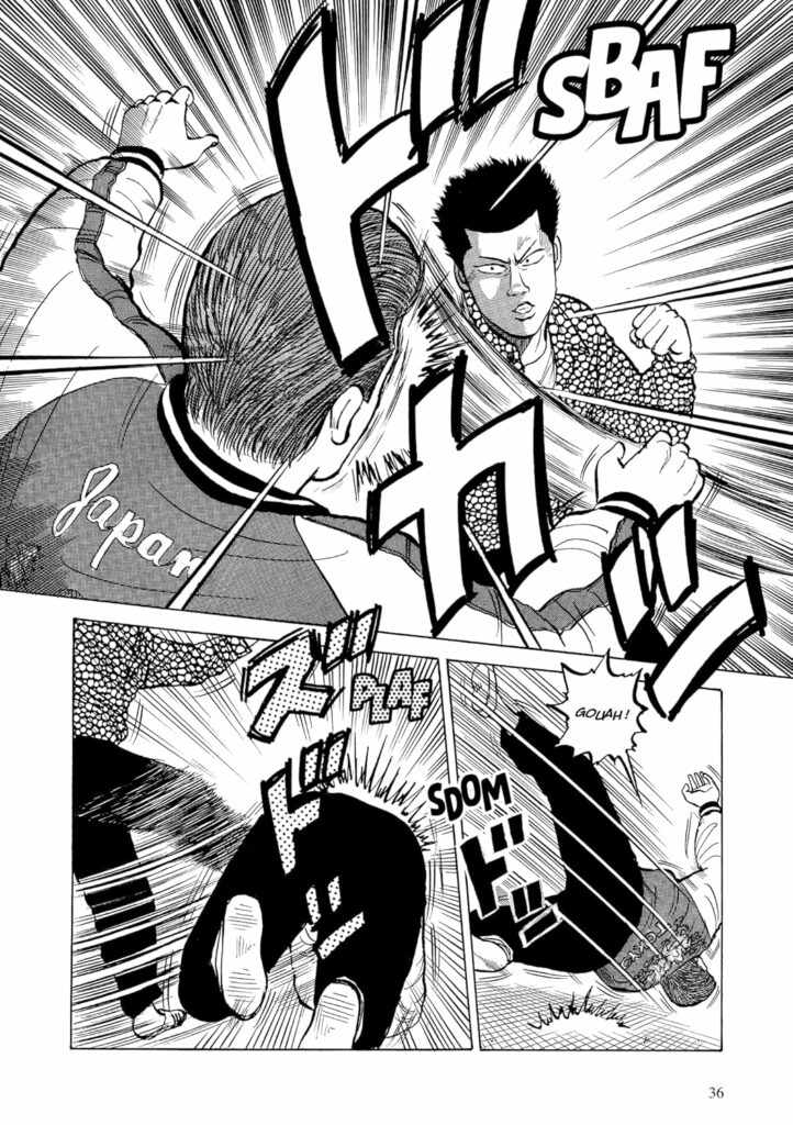 Le style est brut, nerveux, typique des années 90. Les visages sont expressifs, les silhouettes marquées, les scènes de combat lisibles et efficaces. Takahashi ne cherche pas l’esbroufe : il veut transmettre une ambiance, une rugosité, une énergie de rue. Et ça fonctionne. On sent la poussière, le béton, la sueur. On sent surtout que chaque personnage a une présence, un charisme, même dans les cases les plus simples.