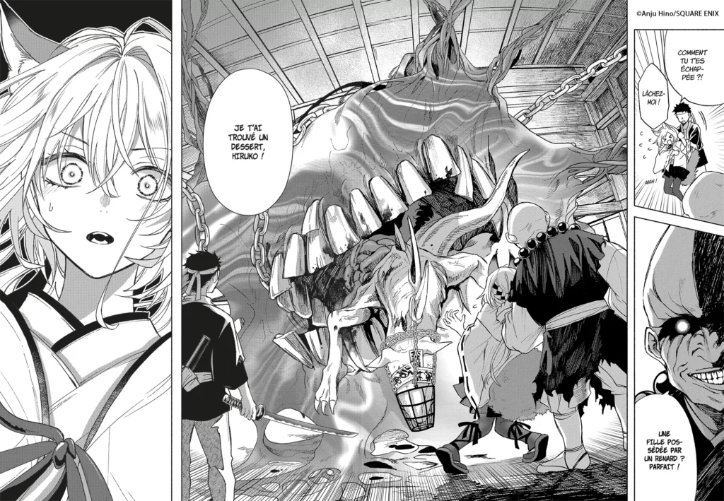 Kuro abat le monstre… mais l’âme du renard trouve refuge dans le corps de Fuyu, désormais possédée par un ennemi redoutable.