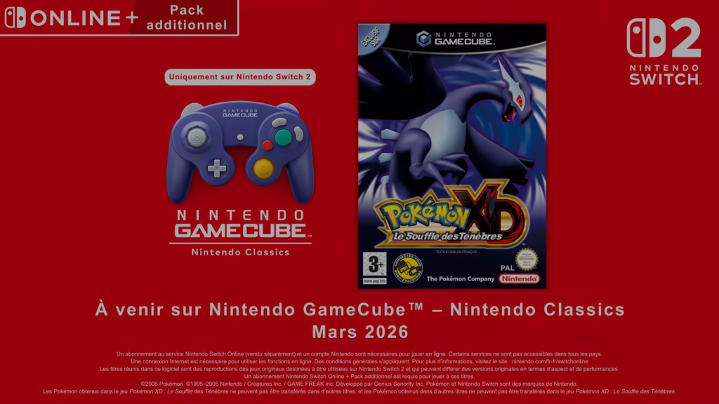 • Pokémon DX: Gale of Darkness arrive en mars via la Console Virtuelle GameCube du Nintendo Switch Online + Pack additionnel.