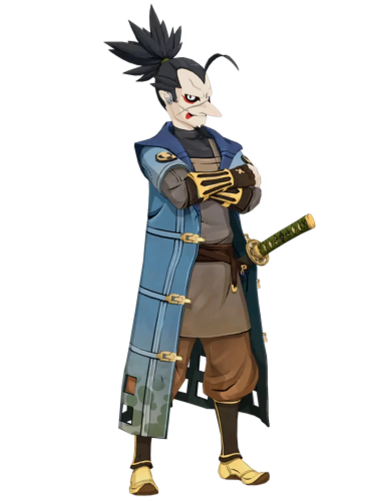 Kenjiro Tsuda prête sa voix au Seigneur Général Isoroku Tsukumo, chef du clan Tsukumo et shogun suprême chargé d’établir les orientations politiques du pays.