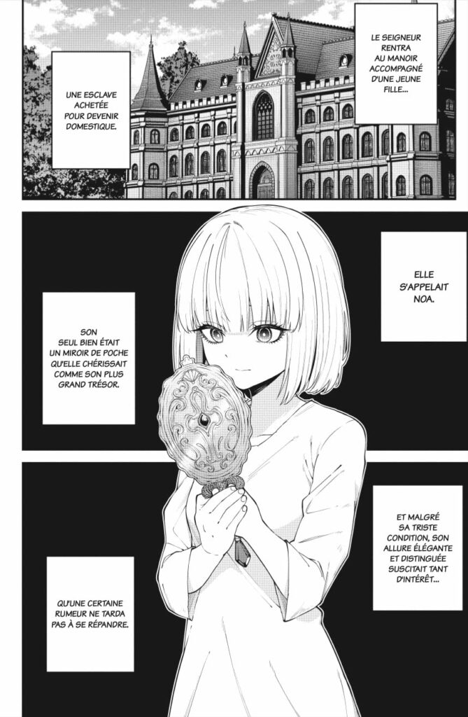 Le manga ne cherche pas à aller trop vite. Il installe son monde, ses règles, ses tensions. La Sorcière des Miroirs reste volontairement en retrait durant une bonne partie du tome, ce qui peut frustrer au premier abord, surtout au vu de la couverture. Mais ce choix sert clairement le récit. Elle est une une menace silencieuse, presque un mythe vivant. Chaque apparition compte, chaque échange est chargé de sous-entendus, de faux-semblants et de méfiance.